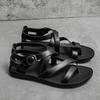 2025 Summer Classic Black/White Men Rome Genuine Leather Roman Sandals Gladiator Breathable Sandals Romanas Hombre Flat Sandles