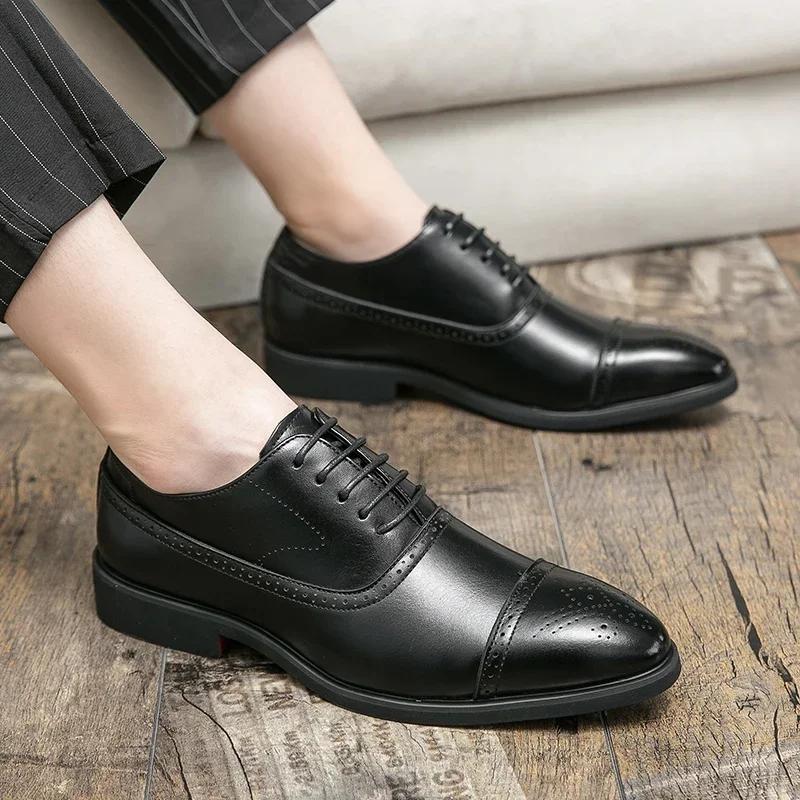 Carving Dress Shoes Men Designer Handmade Business Formal Shoes Men Original Pointed Wedding Shoes 2024