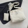 Women's Solid Color Imitation Sherpa Warm Plush Shoulder Bag with Inner Pocket Vintage Crossbody Handbag for Work & Travel KTY