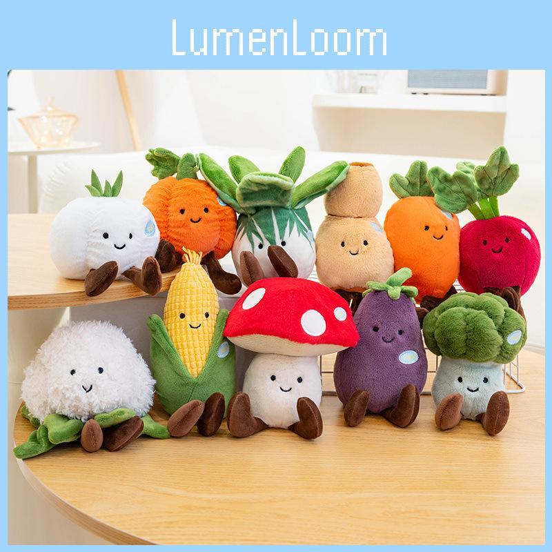 This realistic vegetable plush figure features detailed plant-inspired designs, including cabbage, mushroom, eggplant, and more. Made with super-soft short-pile plush and filled with heavy particles for stability, each toy measures approximately 15cm tall. Ideal for collection or gift-giving, it resists deformation and maintains shape through repeated use. Wipe clean with a damp cloth to preserve the plush appearance.