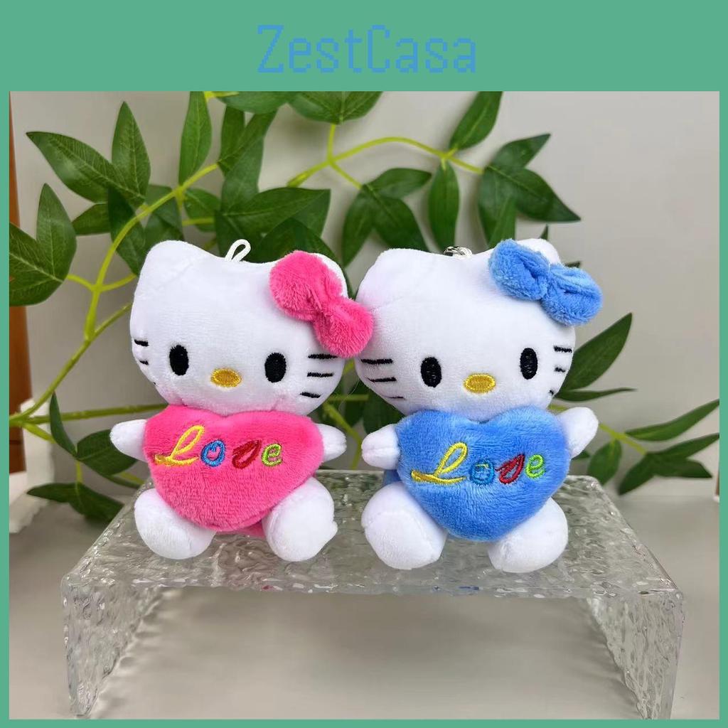 Kt Lovely Cat Plush Doll Keyring Charming Heart Cat Keychain Toy Fluffy