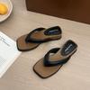 2025 Beach Shoes Slope Heel Wind Pinch Feet New Cool Slippers Square Head Holiday Flip-flops Women's Summer Wear Silver