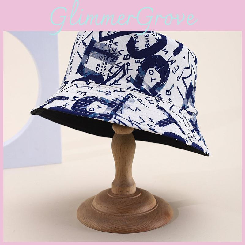 Blend Summer Cotton Fisherman Hat Letter Print Wide Brim Sun Protection Wind
