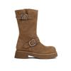 Cowhide Version Stacking Boots Women's Boots King Fried Medium Tube Thick-soled Stacking Boots Are Thin, Cover Meat and Show Legs, Long Autumn and