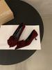 French Pointed Single Shoes Women's Shoes Spring and Autumn 2025 New Red Wedding Shoes Bow Light Mouth Thin Heel Suede Ladyshoes