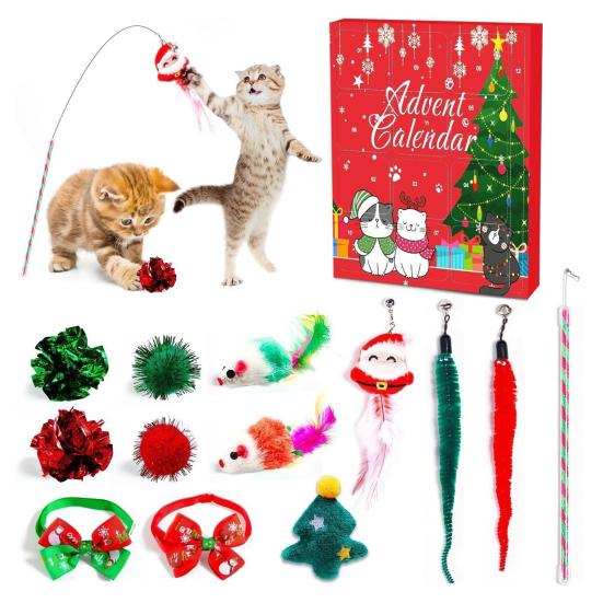 Treat your feline friend to a joyful holiday season! Indulge your beloved cat with our cat advent calendar, a delightful collection of various toys designed for indoor feline fun. Inside this festive Christmas advent calendar box, your furry companion will discover vibrant balls, a variety of mice toys, playful ball toys, an enchanting cat teaser wand, a charming Christmas toy, and a jingling bell. This assortment promises endless entertainment for your cat during the holiday season.