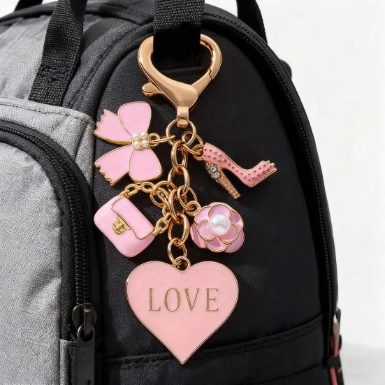 Keychain Pendant with Faux Pearl Embellishment Enamel Heart Bowknot Flower Charm Key