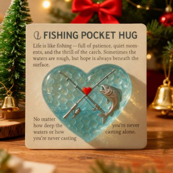 Warm Reminder of Strength: Tailored for fishing enthusiasts, this pocket hug symbolizes patience, strength, and companionship, offering a heartfelt reminder of the tranquility found by the water's edge.
