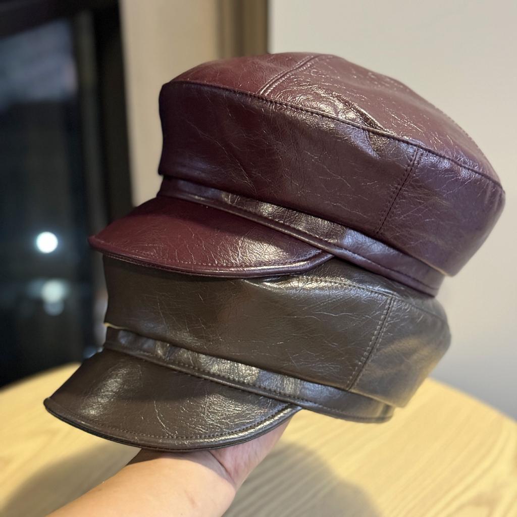 Leather Duck Cap for Women Versatile Newsboy Hat Solid Color Simple Octagonal Hat Beret Painter Hat Japanese Style