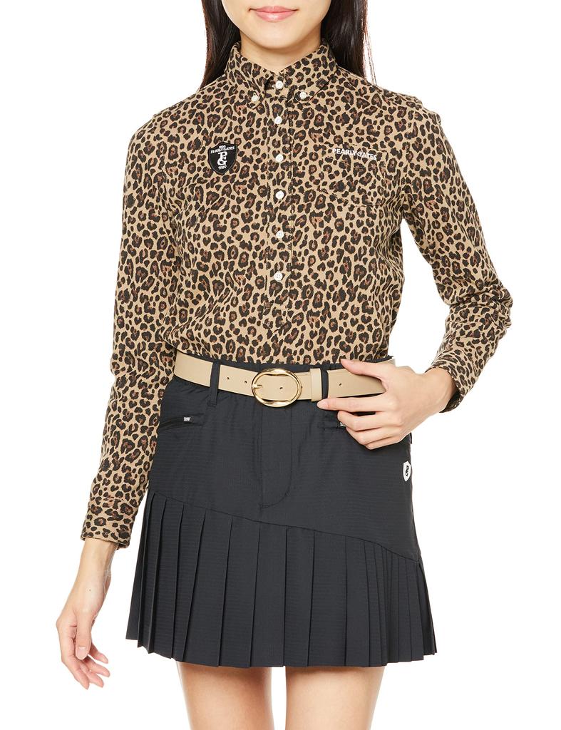 ■ [PEARLY GATES] [Women's] Long-Sleeve Polo Shirt, Thermolite Pique, Leopard Print, Lightweight and Warm / 055-2261004