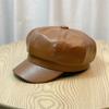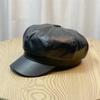 Autumn and Winter Women's Big Head Octagonal Hat Leather Painter's Hat Korean Version PU Large Peaked Cap British Versatile Beret Men's Winter