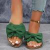 Foreign Trade New Flat-bottomed Rhinestone Bow One-word Slippers Women Wear Solid Color Light Cloth Cool Slippers 2025
