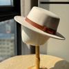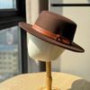 New French Double Belt Buckle Woolen Hat Flat Top Hat for Women Autumn and Winter British Retro Style Wide Brim Felt Hat