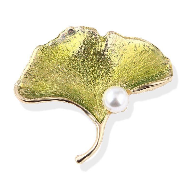 Natural Pearl High Quality Ginkgo Leaf Coat Brooch Fashion Zirconia Corsage Fashion Coat Pin Designer Brooch Mini Bobby Pins Perfect Gift for Couples