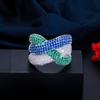 White Gold Plated Zircon Full Diamond Color Separation Ring, Popular Micro-Set Ring.