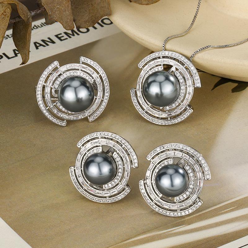 Accessories Set Earrings Necklace Ring Imitation Pearl Platinum Grey Beads Women'S High Sense Elegance
