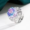 Jewelry Copper Bottom Gold-Plated Rose Cut Sea Blue Retro Ring Heroine Stone 14Mm