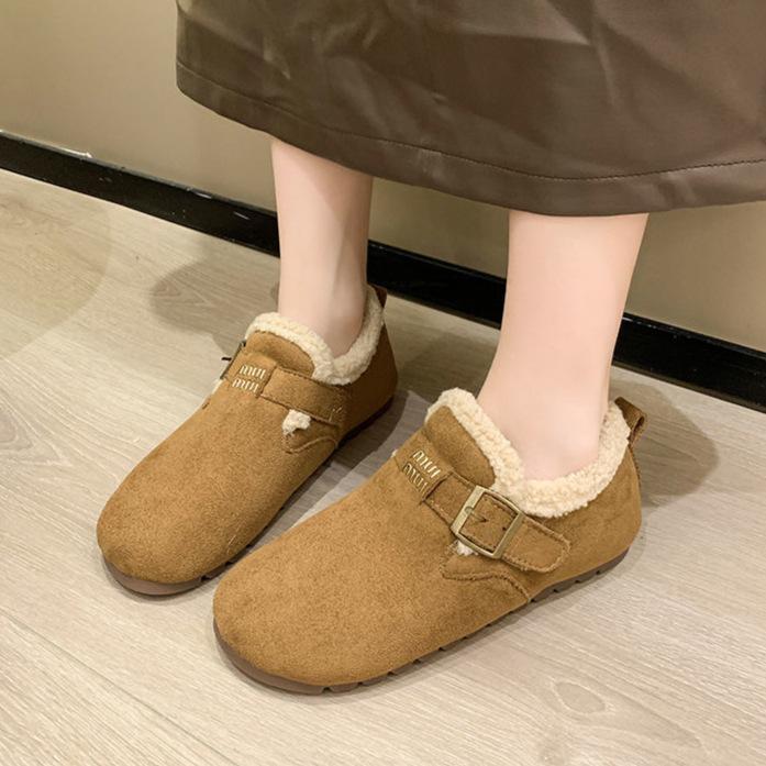 2025 Winter New Korean Version Comfortable Soft Sole Warm Outer Wear Cotton Shoes Doudou Shoes Velvet One Pedal Lazy Shoes Women