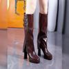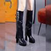 Autumn and Winter Versatile Waterproof Platform High Heel But Knee Pants Boots 2025 Belt Buckle Thick Heel High Tube Brown Knight Boots