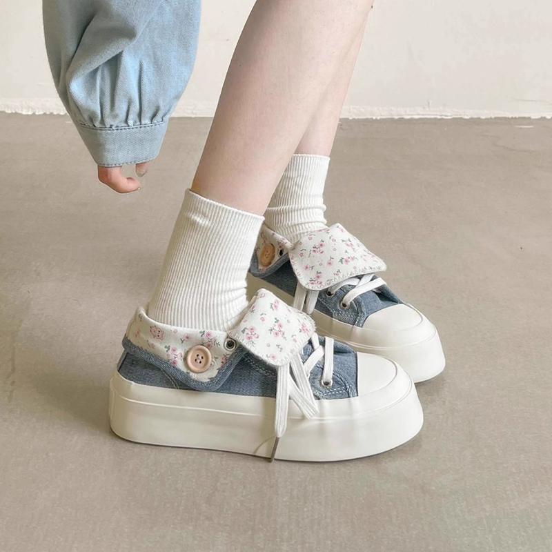 2025 Soft Women Niche Design Chunky Casual Sneaker High Top Canvas Shoes Student Convertible Two Way Wear Skate Shoes Thick Sole