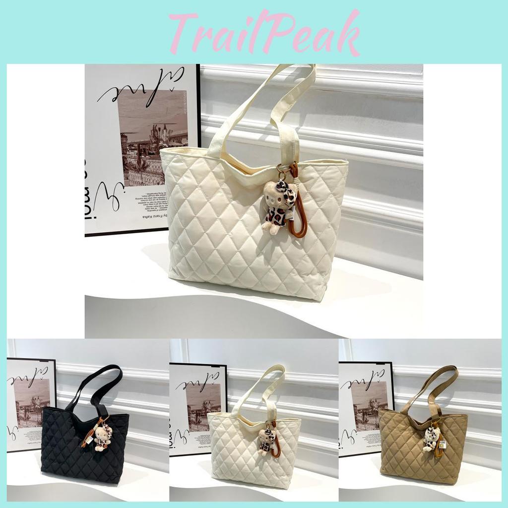 Sophisticated Large Capacity Tote Bag For Women Fashionable Quilted Design Soft Fabric Crossbody Bag Available In Black White Kh