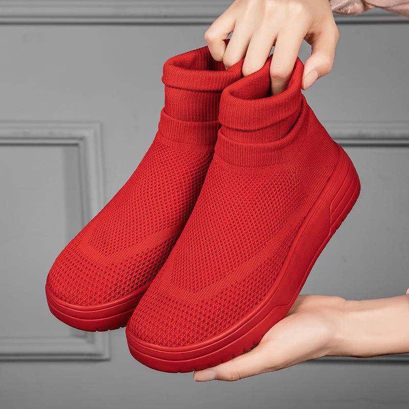 Men's Shoes Autumn New High-top Couple Socks Casual Shoes Large Size Thick Baseplate Shoes Breathable Fly-woven Mesh Sneakers