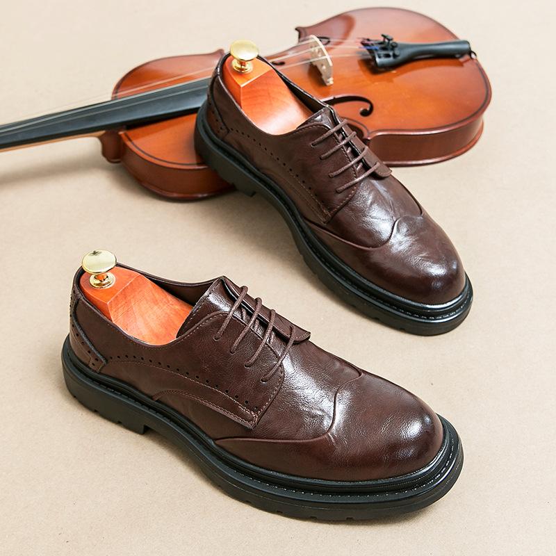 Men's British Style Business Casual Leather Shoes Fashion Trend Retro Lace-up Leather Shoes Groom Wedding Shoes