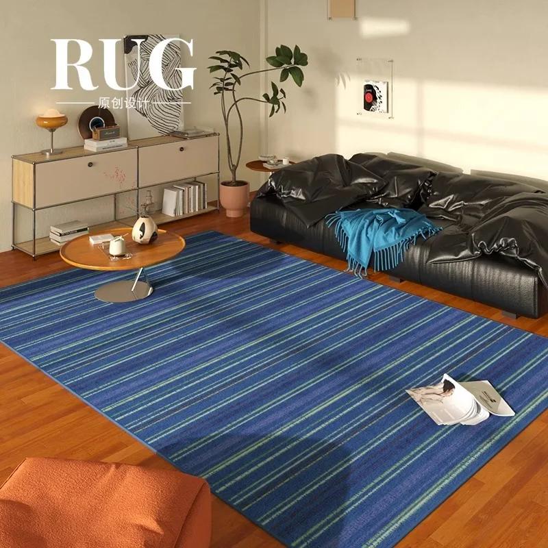 Living Room Modern Retro Blue Carpet Stripes Lines Bedroom Bedside Soft Rug Coffee Table Leisure Area Plush Floor Mat Alfombra