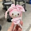 The My MelodyAnniversary Cartoon Plush Keychain features a cute, cartoon-inspired design with a variety of charming motifs, including rose, strawberry, and bow accents. Made of soft short-pile plush and filled with durable PP cotton, it measures approximately 10cm in height. Ideal for decorating bags or keys, it adds a playful touch to everyday accessories. Easy to maintain, wipe clean with a damp cloth for continued freshness.