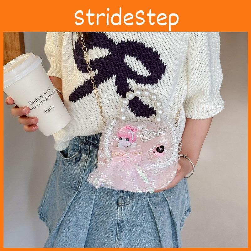 Crossbody Bowknot Girls Bag Sparkly Cartoon Shoulder Bag With Pearl Chain Strap
