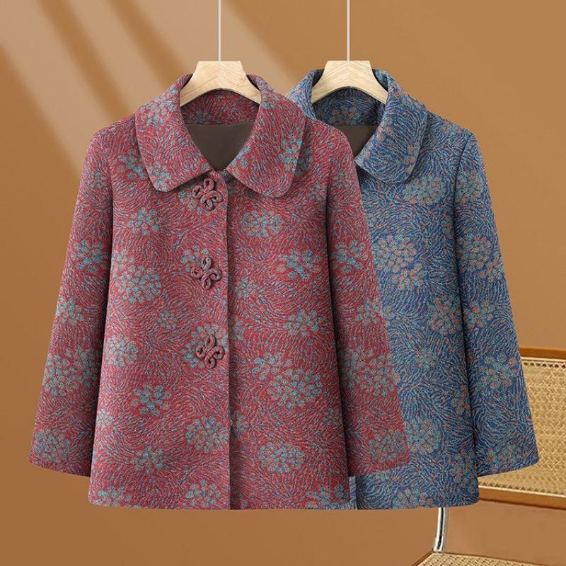 Spring Women's Coat Old Lady Lapel Loose Clothes Top