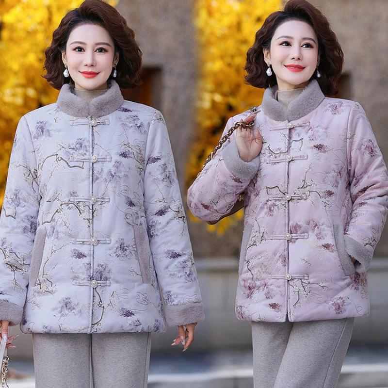 New Winter Chinese Fleece Thickened Cotton-padded Jacket Medium Women's Down Warm Cotton-padded Jacket