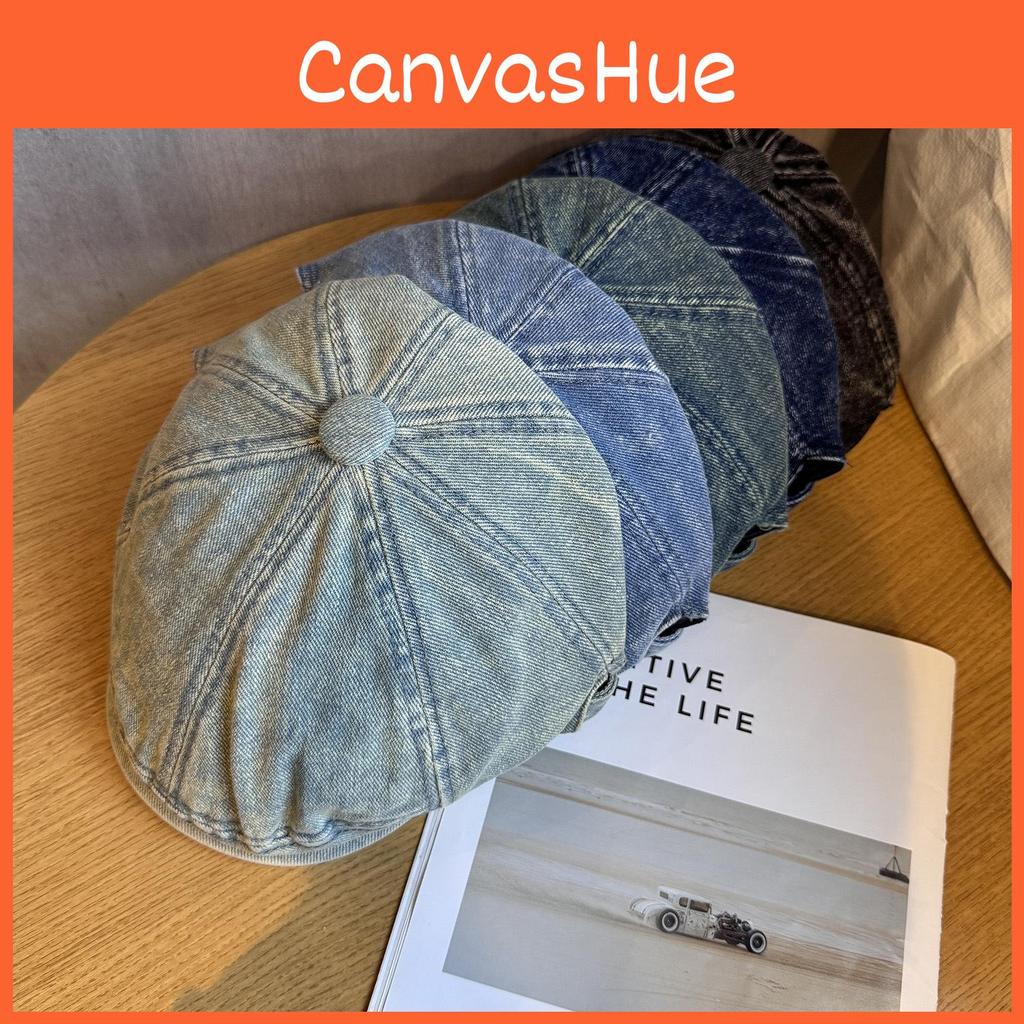 Denim Beret Retro Hat Short Brim Duckbill Cap For Women Casual Wear Street