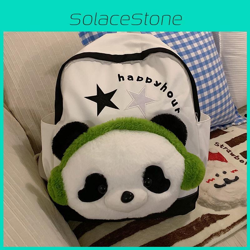 Panda Bear Doll Headband Earphones Star Letter Backpack Zipper Style Design