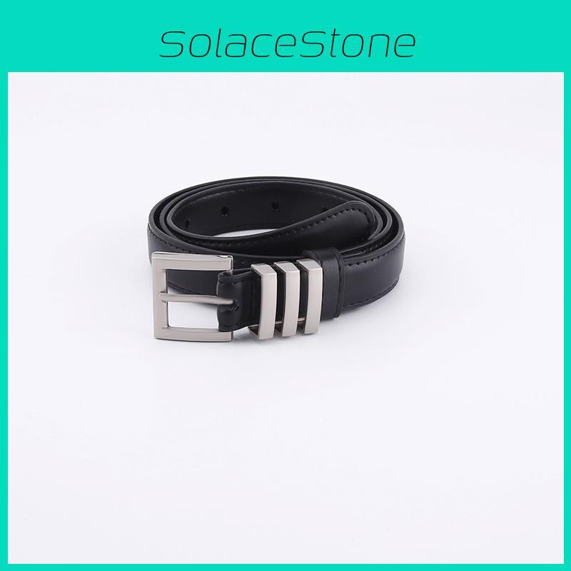 This women's belt features a durable alloy buckle and a smooth PU leather strap,a pin buckle closure. Its minimalistic design combines a sleek finish with decorative nailhead accents and embossed details for a refined look. Made for everyday wear, it supports versatile styling in casual or professional settings. Easy to maintain, wipe clean with a damp cloth for lasting sophistication.