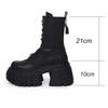 Autumn Women Boots 10CM Heels Wedges Platform PU Leather Rivet Buckle Shoes Cool Retro Punk Boots Lace-up&Zip Casual Dress Shoes