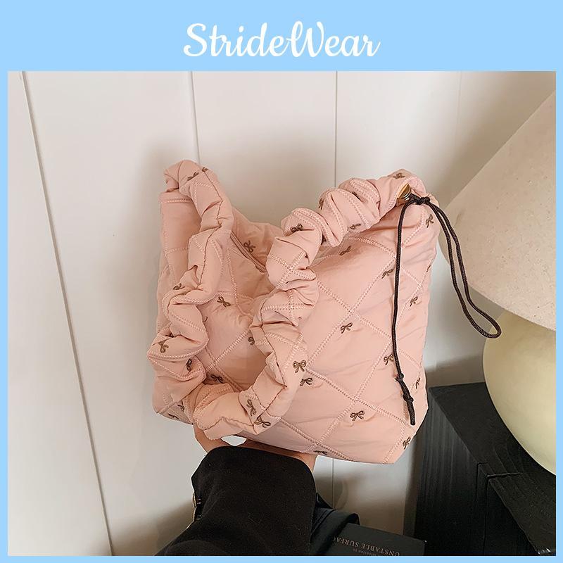 Introducing the Chic Quilted Nylon Handbag for Women, a perfect blend of modern elegance and everyday practicality. This stylish shoulder bag features a delightful bow detail that adds a touch of whimsy to its urban minimalist design. Crafted from high-quality nylon, this handbag is not only durable but also lightweight, making it ideal for daily wear. Available in a range of contemporary colors, including classic black, pristine white, soft pink, earthy khaki, vibrant green, and sleek grey, theres a perfect shade for every womans taste.