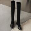 Autumn and Winter Women's Elastic Boots Comfortable Rubber Sole Middle Heel Pointed Large Size Women's Boots Korean Edition Black Over-the-Knee Boots
