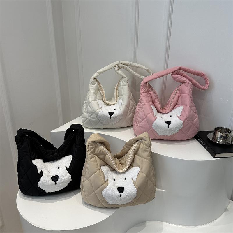 Cartoon Cotton Clothes Bag Women's 2025 Autumn and Winter New Large-capacity Handbag Cute and Sweet Shoulder Messenger Tote Bag
