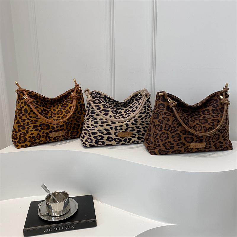 Popular Bucket Large Capacity Bag Women 2025 New Internet Celebrity Retro Leopard Print Shoulder Armpit Bag Tote Messenger Bag