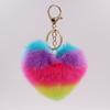 15x10cm Colorful Key Chain For Women Fashion Gifts Fur Keychain Fluffy Faux Rabbit Key Chain Keyring Car Bag Heart Pendant
