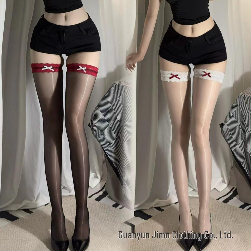 End-of-Season Aurora Ultrathin Lace Bow Knee-High Glossy Erotic Socks for Women