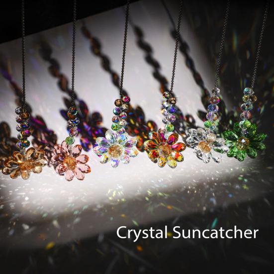 Yousheng Glass Flower Suncatcher Hanging Decoration Indoor Outdoor Garden Car Rearview Mirror Rainbow Maker Floral Hanging Ornament