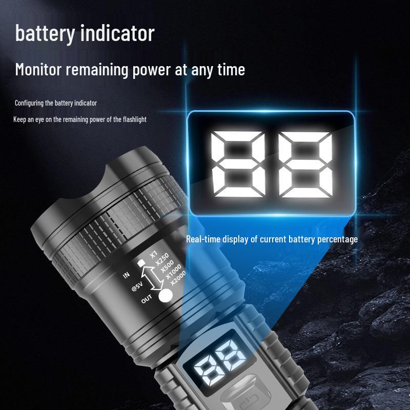 Rechargeable Zoomable Flashlight: Long-Range, Portable, Digital Display for Outdoor, Household, and Emergency Use