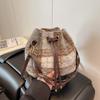 Woolen Drawstring Bucket Bag Women's 2025 Autumn and Winter New Plaid Shoulder Bag Versatile Casual Messenger Bag Commuter Bag