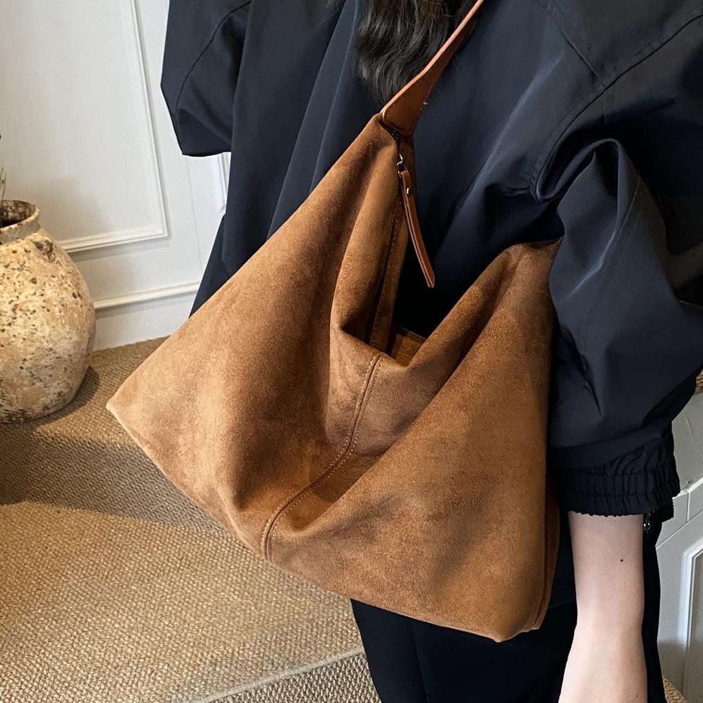 Large Capacity Suede Messenger Bag Women's 2025 Autumn and Winter New Retro Commuter Shoulder Bag Niche Commuter Tote Bag