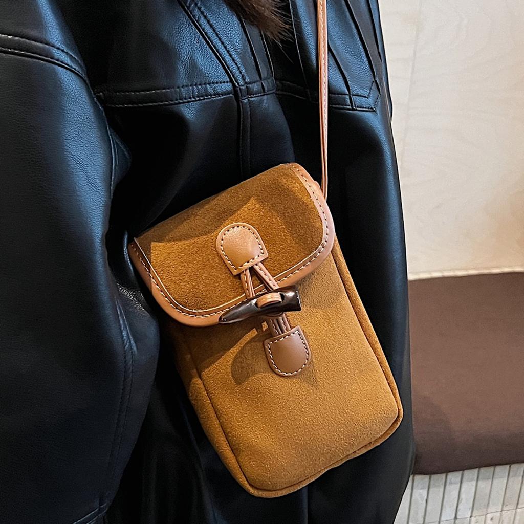 Corner Buckle Mobile Phone Bag 2025 New Fashion Popular Small Square Bag Mini Retro Plush Contrasting Color Shoulder Messenger Bag