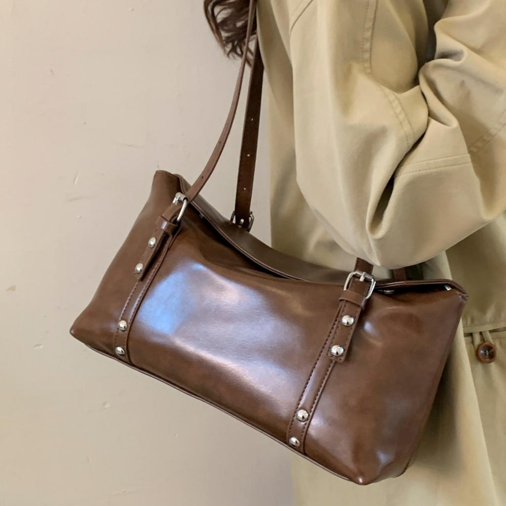 Oil Wax Leather Retro Underarm Bag Women's 2025 New High-end Niche Commuter Bag Fashion Shoulder Messenger Bag Tide