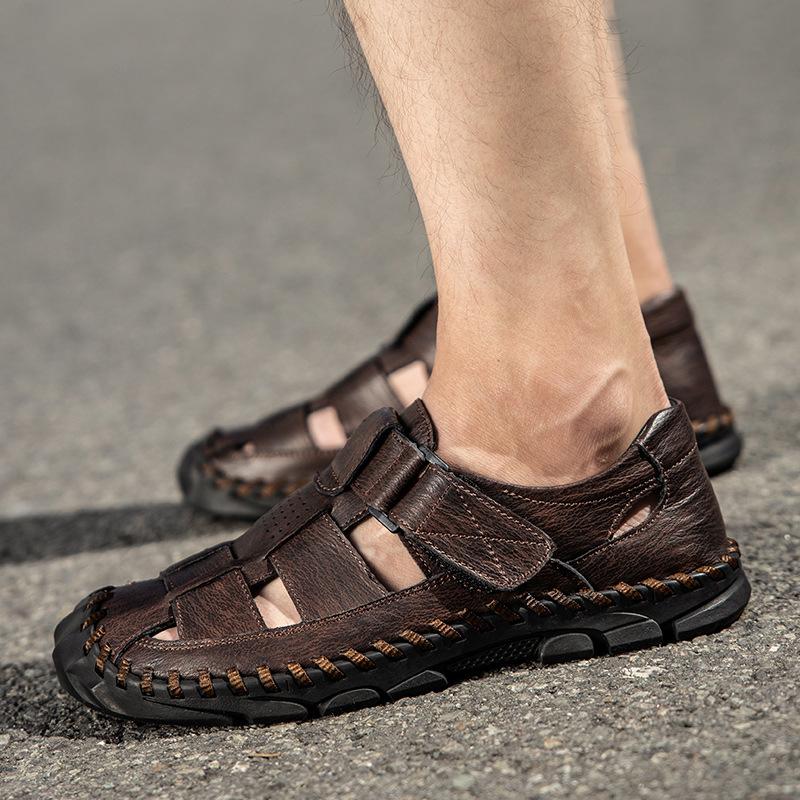 Large Size Sandals 2025 Summer New Casual Bag Head Leather Hole Lazy One Pedal Men's Beach Shoes