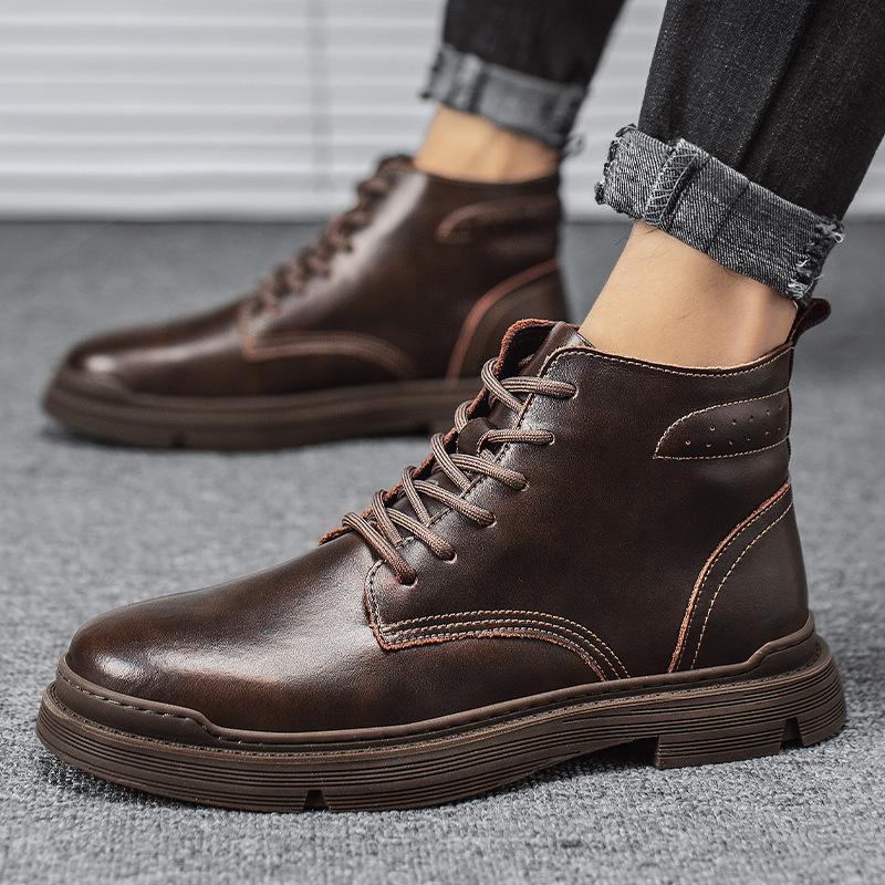 Autumn and Winter 2025 New Martin Boots Men's High-top British Style Retro Leather Large-size Men's Shoes Tooling Boots Medium-top Leather Boots